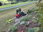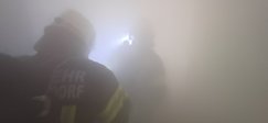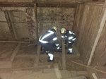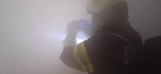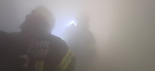 Nach dem Eintreffen am Übungsort führte der Einsatzleiter gemeinsam mit seinem Melder eine Lageerkundung durch. Der anwesende Hausbesitzer teilte mit, dass sich drei Personen im Gebäude befinden und vermisst werden. Umgehend wurde ein Atemschutztrupp zur Menschenrettung in das stark verrauchte Objekt entsendet.